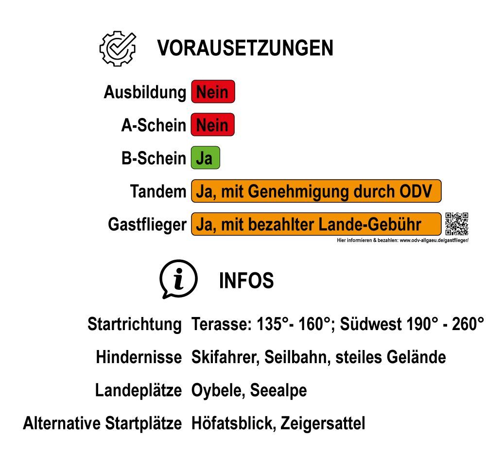 Der Startplatz Höfatsblick ist im Winter ein recht entspannter Startplatz mit wenigen Gefahren. Die Windfahnen zeigen den Wind zuverlässig an, Startabbrüche sind sicher durchführbar, und die thermische Aktivität direkt nach dem Abheben ist meist gering. Besondere Aufmerksamkeit ist auf den geringen Abstand zur Seilbahn zu richten. Daher ist eine gründliche Leinenkontrolle besonders wichtig. Aufgrund des begrenzten Platzes muss die Ausrüstung auf den Aufbauplätzen vorbereitet und angelegt werden. So kann man in Ruhe alles vorbereiten, um die Zeit am Startplatz zu minimieren.